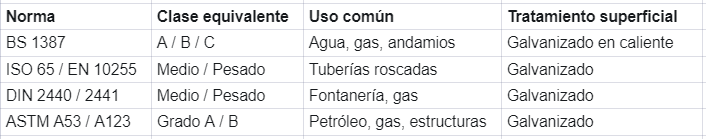 La buena noticia es que BS 1387 mantiene una sólida equivalencia con ISO 65, DIN 2440/2441 y ASTM A53/A123, garantizando productos de alta calidad, duraderos y seguros para diversas aplicaciones.